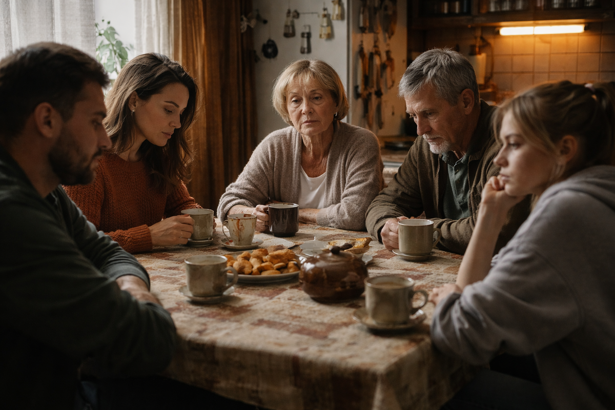 Сначала было неловко. Словно мы не семья, а люди после странной зимы, которые пришли на повторное знакомство. Потом Гена разлил чай, Полина уронила вилку, Ира засмеялась, и воздух как-то сам оттаял.