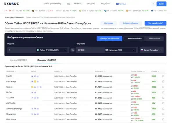 Шаг 1. Выберите сервис. Откройте мониторинг Exnode и сравните условия нескольких обменников — курсы, отзывы, резервы наличных. Обращайте внимание не только на цену, но и на скорость ответа оператора и наличие офиса. Так обычно находят проверенные обменники криптовалют в Москве без лишних рисков.