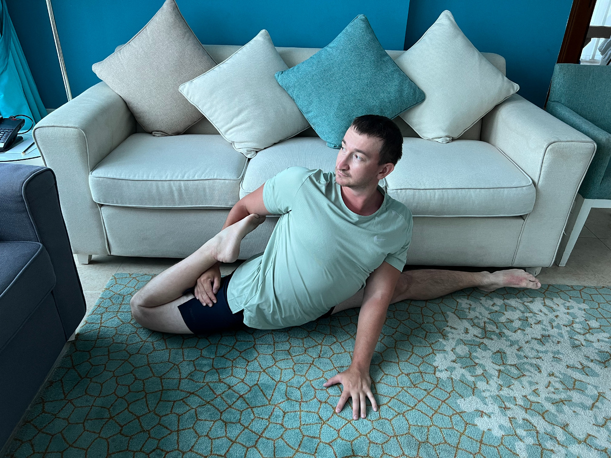 Растяжка мышц задней поверхности бедра: Часто напряженные мышцы бедра влияют на положение таза и поясницы.