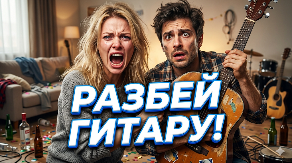 Гитара появилась на третий год брака. Сначала звучала по выходным — терпимо. Потом по вечерам. Потом в случайное время, когда «настроение». Сосед с пятого этажа однажды постучал в потолок шваброй. Олег засмеялся: «Оценил».