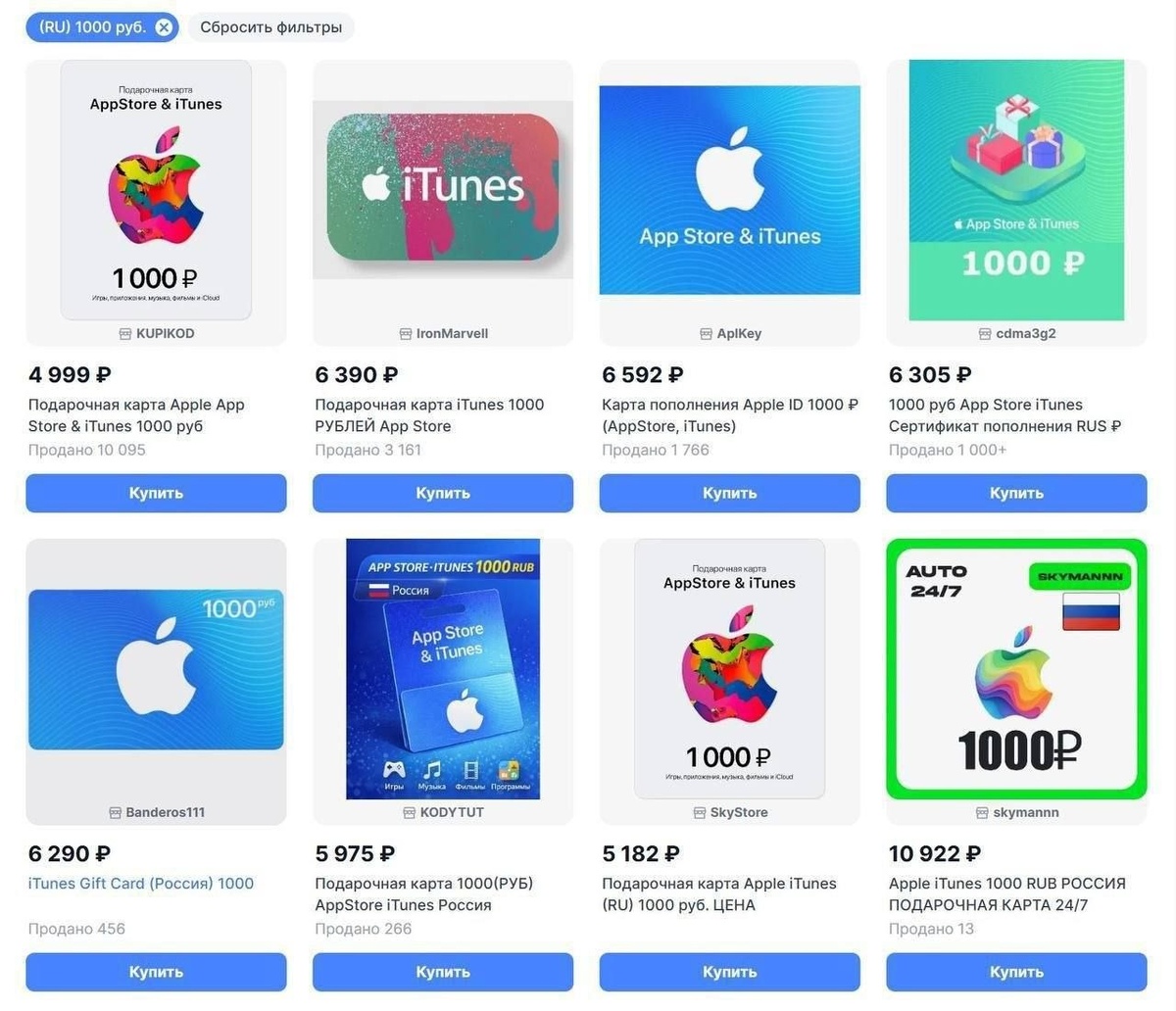 🍏 Тем временем пополнить Apple ID на 1000 рублей через подарочную карту стоит уже минимум 5000 рублей