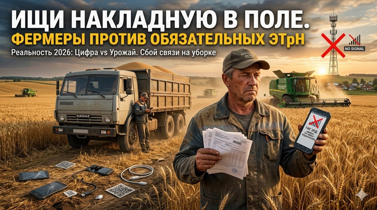 Ассоциация «Народный фермер» обратилась в Минтранс с просьбой освободить малый агробизнес от обязанности составлять электронные транспортные накладные (ЭТрН) при внутрихозяйственных перевозках. Главные аргументы: ❌ Отсутствие связи: 300+ населенных пунктов (и тысячи полей) не охвачены интернетом. Оформить цифровую накладную на месте отгрузки технически невозможно. 💰 Дополнительные затраты: Покупка смартфонов, ПО, обучение водителей (многие не готовы к работе с приложениями). Расходы: 40–50 тыс. руб. в год. ⚠️ Риск простоя и убытков: Технические сбои, ошибки (в среднем 15% накладных переделывают) или отсутствие весового оборудования остановят уборку и приведут к порче продукции. Фермеры просят переходный период до 2028 года. Позиция властей: Минсельхоз поддерживает аграриев. Минтранс пояснил, что на тракторы ЭТрН составлять не нужно, но для грузовиков требования остаются в силе. Пока у фермеров нет полного понимания, как система будет работать с 1 сентября 2026 года. Они указы