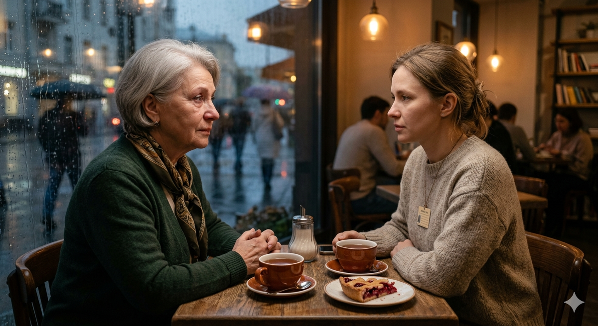 Они встретились в маленьком кафе недалеко от дома Галины. Ольга пришла вовремя, без опозданий. Заказала чай. Галина взяла кофе — хотя кофе она почти не пила, просто захотелось чего-то твёрдого в руках.