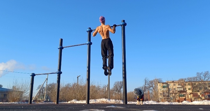 Повисните на перекладине. Руки полностью вытянуты. Ноги оторваны от земли. Большинство зачастую игнорируют эти, казалось бы, простые шаги. Это первая ошибка. Многие также просто меняют хват. Но ничего не работает. Важны четыре компонента, которые обеспечивают разумное и полезное выполнение подтягиваний. Большинство просто повторяют одну и ту же ошибку снова и снова, делая всё больше повторений Первую ошибку заметить легче всего, но сложнее всего признать. Неполнота амплитуды подтягивания. Настоящее подтягивание начинается с качественного виса. Руки полностью выпрямлены, локти зафиксированы, плечи разведены, до самого низа. Большинство начинают подтягивание с середины амплитуды, а это значит, что они тренируют и используют только половину мышц, половину амплитуды, половину нагрузки, половину прогресса. Делаюе это продолжительное время и удивляются, почему отсутствует прогресс. Уменьшать амплитуду — уменьшать эффективность упражнения. По сути, делать другое движение и называть его подтя