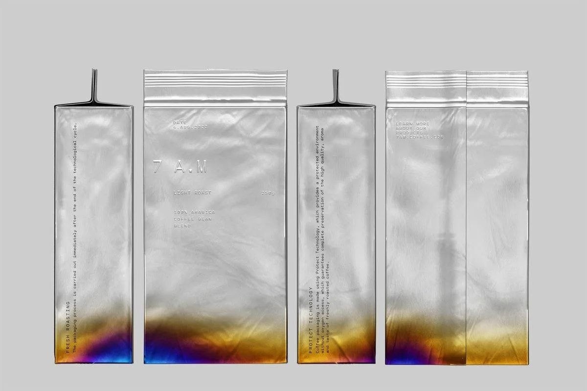 Чем сильнее обжарка — тем более «подгоревший» и насыщенней выглядит пакет. На фольге эффект огня и тепла раскрывается ещё лучше.