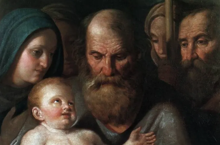 Симеон, кажется, сразу понимает, что происходит, в то время как все остальные в храме продолжают заниматься своими делами, будто ничего необычного не случилось.