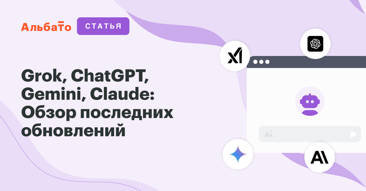 Ниже разберём каждый чатбот: что он умеет, сколько стоит, где сильнее конкурентов, а где проигрывает. В конце статьи будет сравнительная таблица, чтобы было проще выбрать подходящий инструмент для конкретных задач. А если понадобится связать выбранную нейросеть с CRM, мессенджерами или таблицами, это можно сделать через платформу автоматизации Альбато без единой строчки кода.