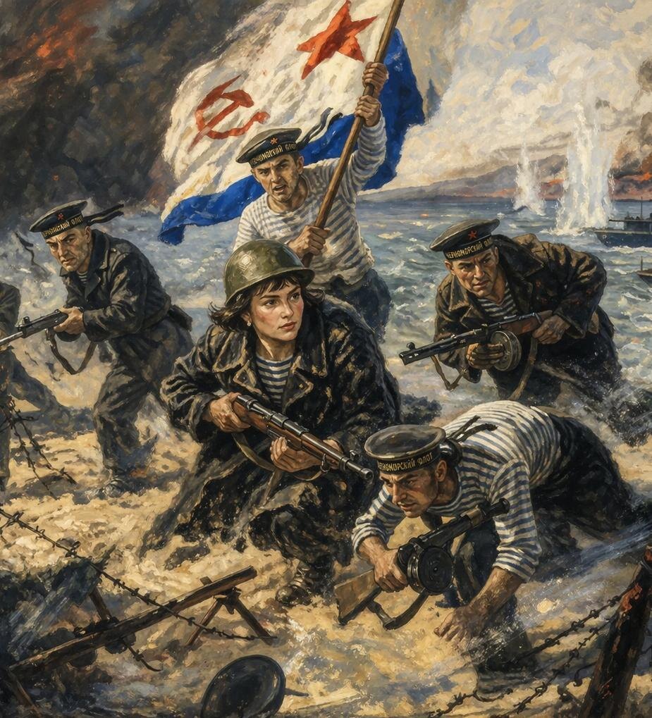 Она не задумывается о том, что сама меняет историю, по капельке совсем, но все же. Она не знает о том, что историю меняют и другие — такие же, как она. По чуть-чуть, незаметно, без желания именно историю изменить, но обладая знаниями, которых в это время быть не могло, выходит, что и жизни они спасают. Десант в Новороссийск, по-моему, был позже, хотя сейчас все перемешалось, потому что Сталинград раньше для немцев закончился. И вот теперь я понимаю, что теоретически могу еще представить, куда конкретно мы пойдем, но вот когда — вообще невозможно определить. И есть еще ощущение у меня, что обстановка не такая, как мне помнится, быть должна. Хорошо это или плохо — не так важно, потому что ничего нельзя изменить. Не спросят нас, ведь планы не тут составляются, так что наш ответ «Есть». А вот, например, на защите точки высадки я насмерть стоять стану, чтобы потом не краснеть от вопросов типа «чем вы думали?» И снова она использует опыт послевоенный. И даже в самом десанте, прыгая в воду