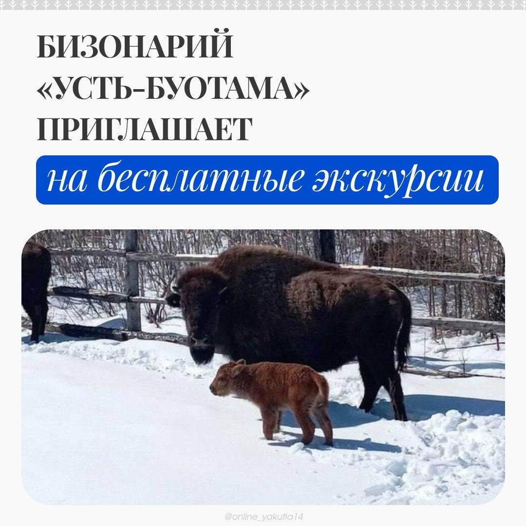 🦬🌿 11 апреля первый бизонарий Якутии приглашает гостей на День открытых дверей. Вход бесплатный. Питомник в Хангаласском улусе начал работу в 2006 году с 30 годовалых телят из канадского парка «Элк Айленд». Позже завезли ещё 90 особей. Сегодня численность бизонов в Якутии достигает 320 голов. Всё это время бизонарием руководит Семён Семёнович Егоров - его здесь называют «отцом якутских бизонов». Животные настолько доверяют ему, что берут корм прямо из ладони. 📍 11 апреля, суббота 🚌 Трансфер от автовокзала Якутска в 10:00 (3000₽ туда-обратно) 🕛 Экскурсии: 11:00, 13:00, 15:00, 17:00 Запись по телефону: 8-999-057-01-25 Online Якутия | Ждем вас в МАХ