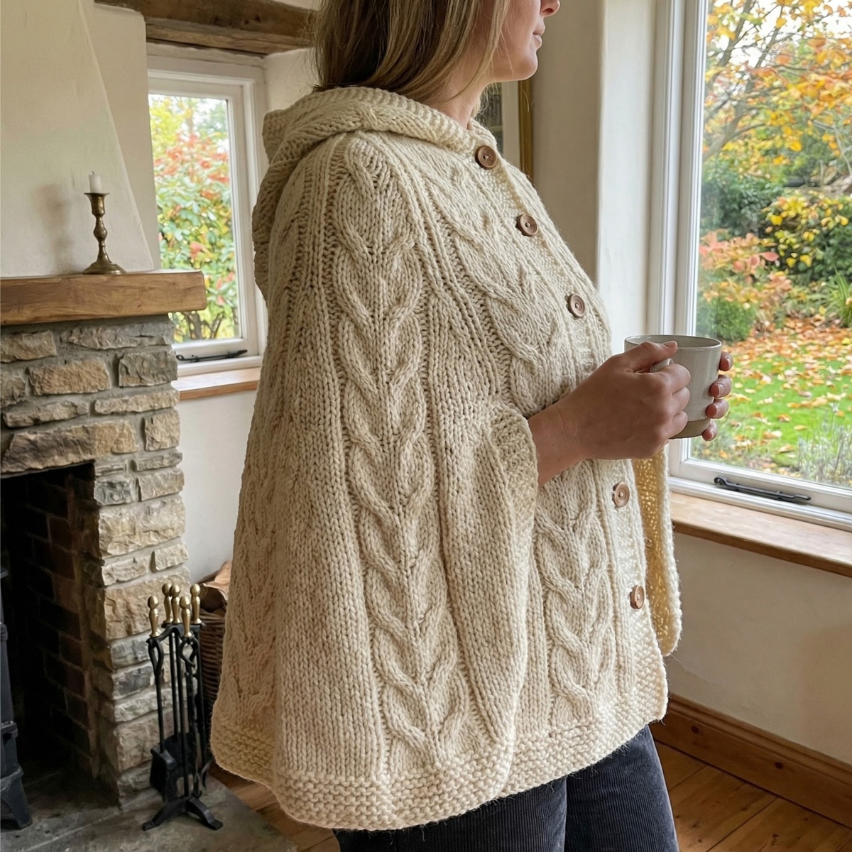 Пелерина — удобное и стильное изделие, которое согревает плечи и не сковывает движения. Для работы потребуется 500–700 г пряжи средней толщины и круговые спицы №4–5 с длинной леской. Вязание начинают от горловины, набирая 80–100 петель, в зависимости от желаемой ширины выреза. Первые 4–5 см провязывают резинкой 1×1 или 2×2, чтобы край аккуратно прилегал к шее.
