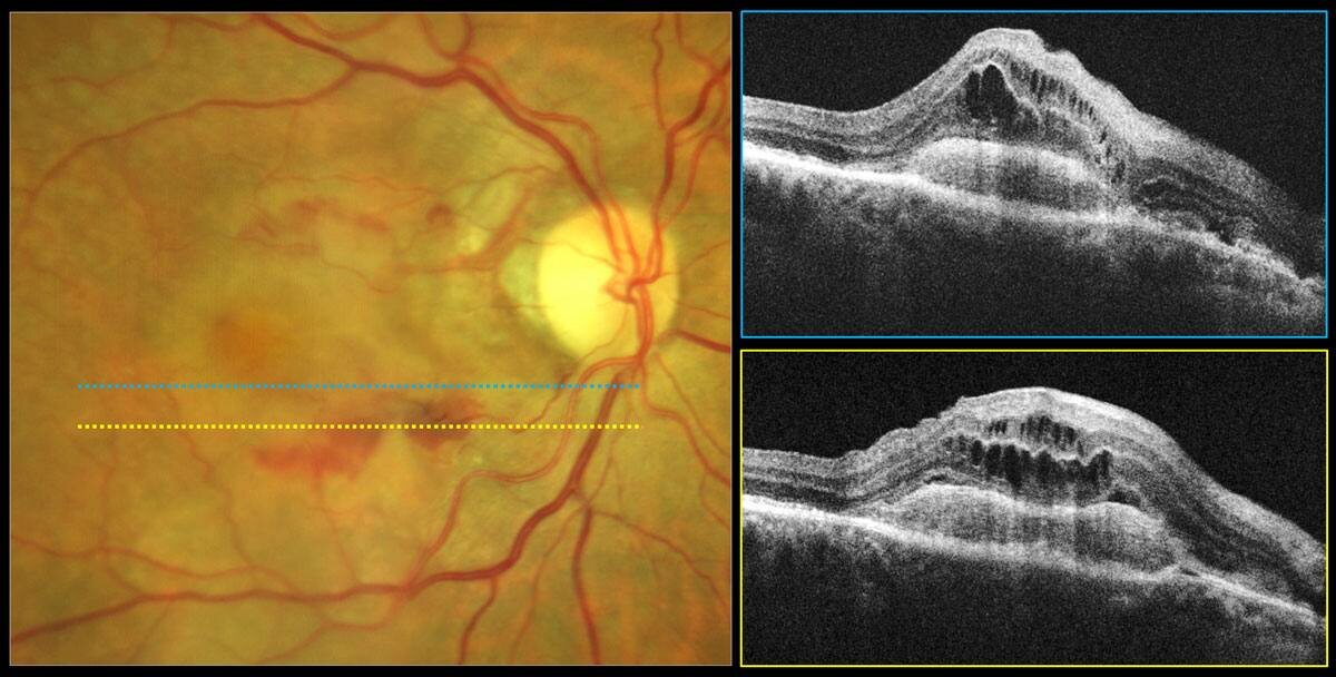 » Если коротко - при возрастной макулярной дегенерации это одно из самых опасных решений. Речь про влажную форму ВМД. Ту самую, при которой в макуле (самом центре сетчатки) растут патологические сосуды. Они «пористые», протекают, вызывают отёк и все это безобразие повреждает фоторецепторы. Очень быстро. Анти-VEGF инъекции - на сегодня золотой стандарт лечения, мои любимчики - Эйлеа и Вобисмо. Это терапия, которая: ✔️ блокирует рост патологических сосудов ✔️ уменьшает отёк ✔️ стабилизирует зрение Теперь важный момент, который часто недооценивают. Это не разовая процедура. Схема лечения: — серия инъекций antiVEGF препаратов (для всех разное количество, но минимум 3 раз в месяц) — регулярный контроль — иногда длительная поддерживающая терапия (с большими перерывами, но нужно «подкалывать») Но даже так - эффект временный. Но если не продолжать - процесс возвращается и будет по итогу в центре рубец. И ещё один нюанс. Страх перед «уколом в глаз» почти всегда больше, чем сама процедур