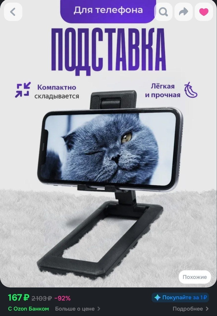 Подставка для телефона, держатель для телефона, смартфона настольный, черный за 167₽ *