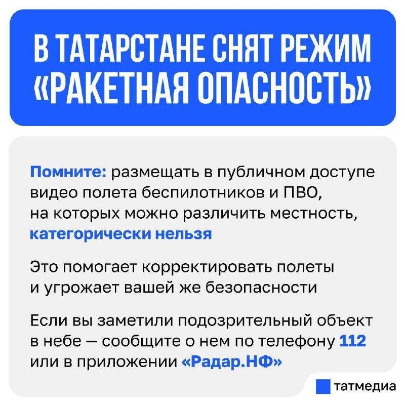 ❕✔️Режим «Ракетная опасность» снят в Татарстане
