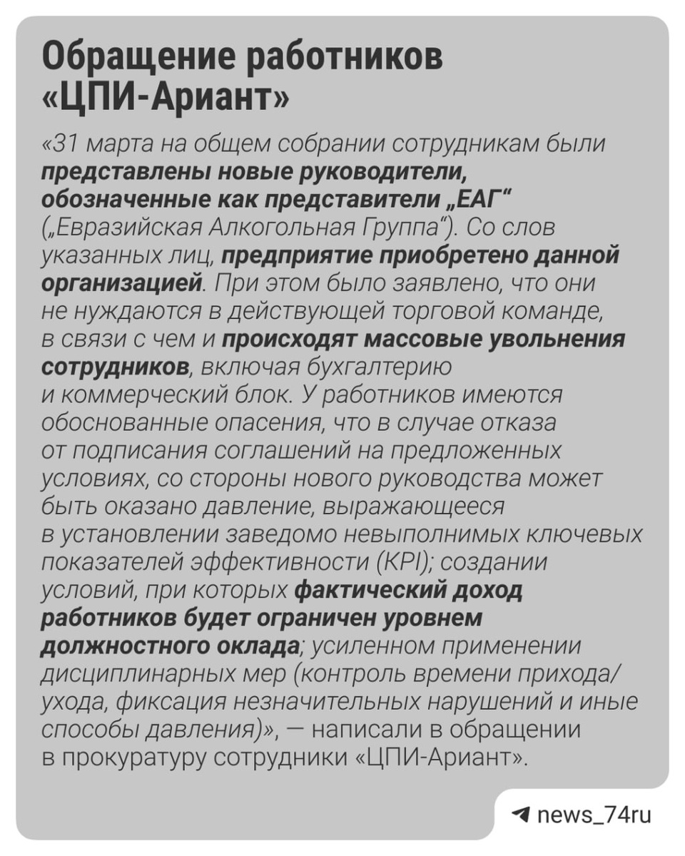 Работники национализированного «Центра пищевой индустрии — Ариант» сообщили о планах предприятия сократить персонал