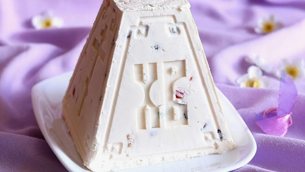 Готовится он по особой методике: яйца взбивают с коричневым сахаром, добавляют сливки и варят до загустения, затем смешивают с протёртым творогом, готовой карамелью (лучше всего солёной или обычной тягучей), сливочным маслом и рублеными орехами пекан. Полученную массу выкладывают в форму, застеленную плёнкой, и ставят в морозилку на 12–15 часов, а затем переставляют в холодильник на 6–8 часов для разморозки. Этот метод позволяет пасхе сохранить идеальную форму и при этом приобрести невероятно кремовую, почти муссовую текстуру, а солёные нотки карамели в сочетании с хрустящими орехами создают сложный, многослойный вкус.