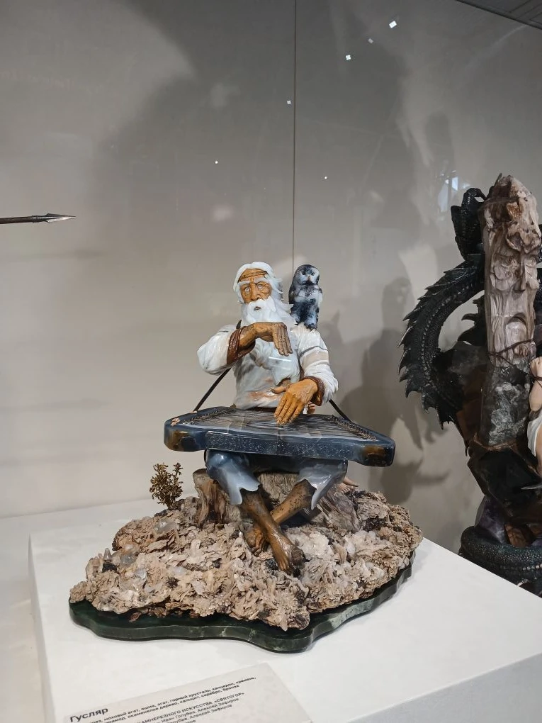 Приветствую вас, дорогие друзья! Эту присказку я услышала от чудесного сказителя- гусляра, которого встретила в начале выставки камнерезного искусства, что проходит сейчас у нас в Екатеринбурге. Вот он, мой сказитель и проводник в мир рукотворных шедевров из камня.