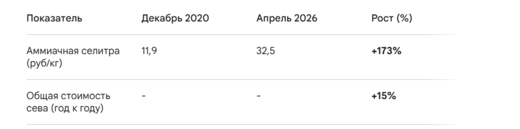 С декабря 2025 года цена на селитру подскочила на 38%. При этом цена на пшеницу (протеин 12,5%) в портах едва доползла до 17 000 рублей за тонну. Математика здесь беспощадна: расходы растут кратно быстрее доходов. Фермеры вынуждены либо вносить меньше удобрений, рискуя урожайностью в будущем, либо работать в ноль, надеясь на «авось».