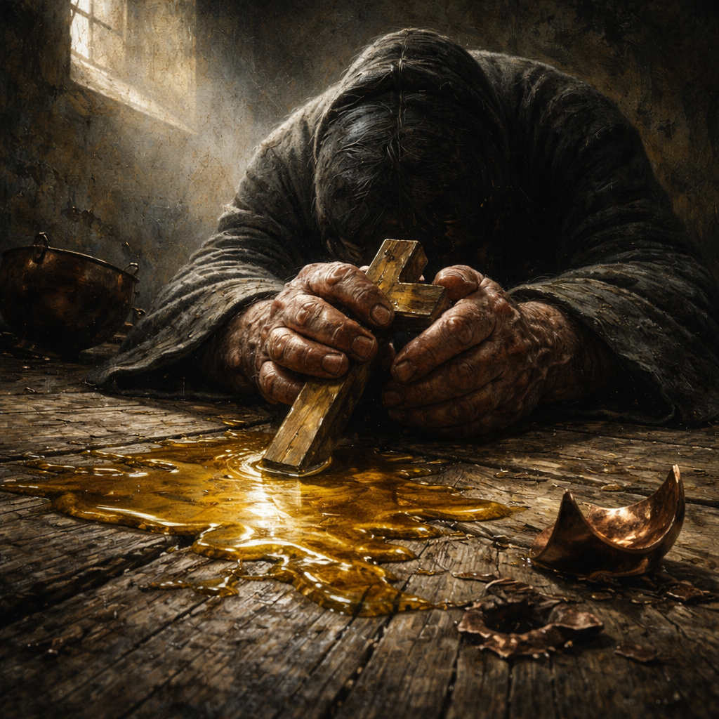 Старец поднялся, баюкая обожженную ногу, и осторожно водрузил Крест на место. Он не стал чистить пол сразу. Он взял старые четки — те самые, что еще недавно казались ему инструментом его силы — и сел в углу.