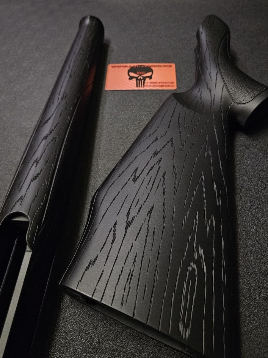 Тактилизация чёрного дерева на прикаде и цевьё это не только очень стильно но и практично, особенно для тех кто не любит камуфляж или карбон.