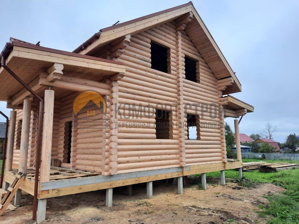 " Площадь: 142.6 кв.м. Размер: 9 х 10 м Место строительства: село им. Бабушкина, Вологодской обл. Материал: Оцилиндрованное бревно 240 мм. Фундамент: ЖБ сваи Кровля: Grand Line с утеплением 200мм Краска: Pinotex, Сахарная вата 030 На первом этаже: Кухня 14,1 кв.м Гостиная 18,3 кв.м Спальня 8,6 кв.м Сан.узел 6,3 кв.м Прихожая 12 кв.м Крыльцо 6,6 кв.м Терраса 18,3 кв.м На втором этаже: Холл 26 кв.м 2 спальни 18,3 кв.м и 14,1 кв.м Интересна стоимость такого дома, ставьте "+", рядом с "+", пишите регион доставки! Записывайтесь на экскурсию на строящиеся объекты. +7 (911) 511-34-72 — Александр
