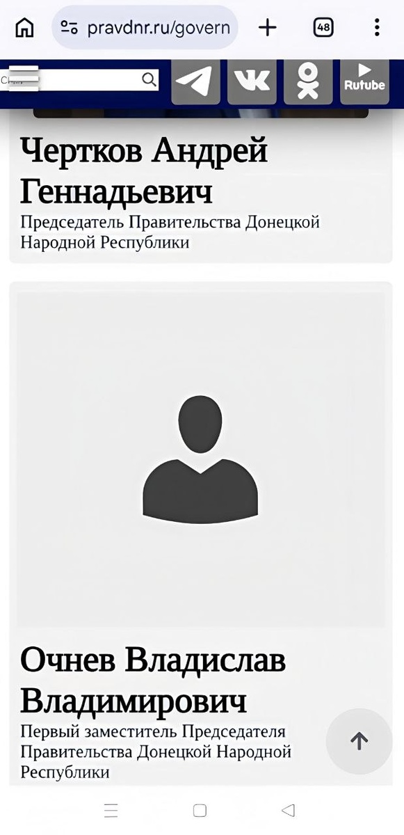 Странность какая на сайте Правительства Донецкой Народной Республики нет ни одного упоминания о человеке с фамилией Дунаев