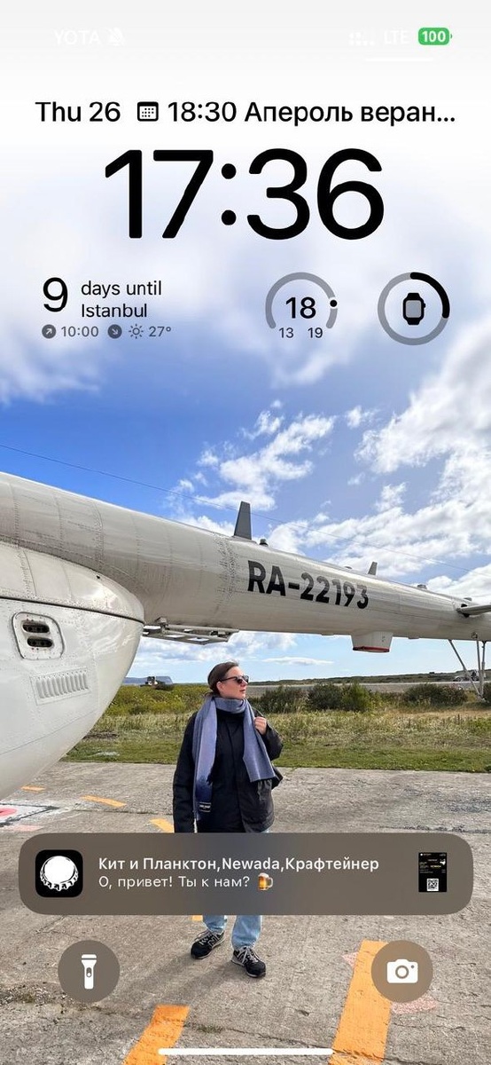 У меня на телефоне живут два верных помощника — Flighty и FlightRadar24. Благодаря им я заранее знаю, всё ли идёт по плану, и не трачу нервы на сюрпризы. — Flighty вытаскивает бронирования из почты, шлёт напоминание о регистрации и раньше авиакомпании сообщает, что рейс задерживают. Особенно выручает функция «inbound delay»: видно, что наш самолёт опаздывает ещё на предыдущем сегменте — можно сразу cкорректировать планы, а не ждать объявления у гейта. А ещё — дает виджет на локскрин о следующем рейсе. — MyFlightRadar24 показывает красивую карту в вебе, которой можно хвастаться и собирает статистику, а я разные разрезы данных очень люблю. А в приложении FlightRadar24 можно в целом посмотреть, что происходит в небе. Как это выглядит на практике 1️⃣ Купил билет — добавил рейс в Flighty и MyFlightRadar24. 2️⃣ За сутки до вылета приходит пуш о регистрации — беру место у выхода или у окошка. 3️⃣ За 3 часа до вылета на экране появляется Live Activity, где будет написан номер гейта. В крупн