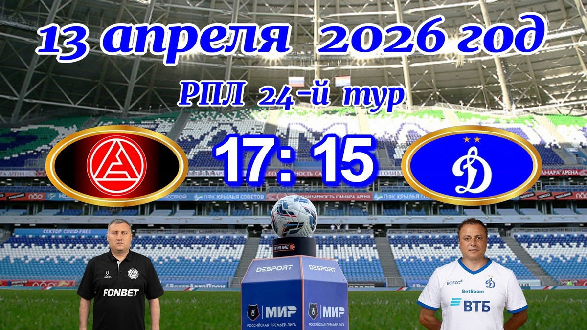 В понедельник, 13 апреля, в 17:15 по московскому времени на стадионе "Арена Солидарность" в Самаре состоится заключительный матч 24-го тура Российской Премьер-Лиги. В напряженном поединке сойдутся тольяттинский «Акрон» и московское «Динамо». Любители футбола смогут наблюдать за ходом этой встречи в прямой трансляции на канале «Матч Премьер».