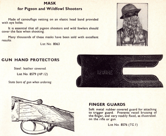 День добрый! Сегодня маленькая заметка о защите рук, какая уже не встречается в оружейных каталогах. Речь пойдет о кожухе, который надевался на стволы ружей. Нашел этот чехол Я в каталоге Parker-Hale 1970-го года, там он назывался GUN HAND PROTECTORS и прятался между маской для охоты на голубей и защиты для пальцев от отдачи. Мой взгляд зацепился за этот чехол, так как сходу Я не понял для чего он нужен. Беглый поиск привел к оригинальному патенту 1907 года за авторством Пауля Норта в США, где уже можно подробно рассмотреть, как чехол должен носиться на ружье. Он выполнялся из гнутого листа металла обшитого тканью и кожей и надевался на стволы двустволки. Цевье проходило в вырез, основная часть чехла охватывала стволы с краев и защищала руки от контакта с металлом стволов. Это полезно в двух случаях: 1-й- при активной стрельбе из ружья - в этом случае руки защищены от ожогов при перегреве стволов; 2-й - при охоте на лютом морозе - в этом случае кожа рук, если они без защиты, точно не п