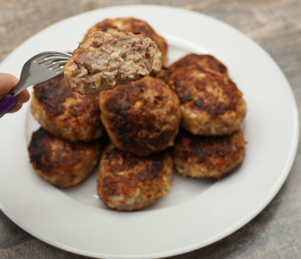 Из готового фарша формируем котлеты. Для удобства руки можно слегка смочить водой. Совет: влажные руки предотвращают прилипание фарша и помогают сформировать аккуратную форму. Сковороду разогреваем с подсолнечным маслом, котлеты обжариваем с двух сторон до образования золотис