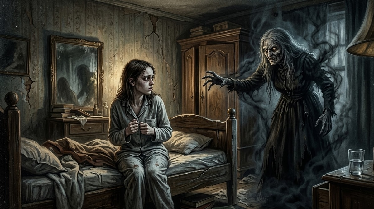 В комнате было не продохнуть от запаха гнили. Бабка пришла не одна — тени в углах шевелились, принимая уродливые формы. Она буквально бесновалась, вцепившись мне в предплечья ледяными пальцами, от которых по коже шел мороз. Она тянула меня куда-то под кровать, в разверзшуюся черноту пола, выкрикивая слова, от которых закладывало уши.