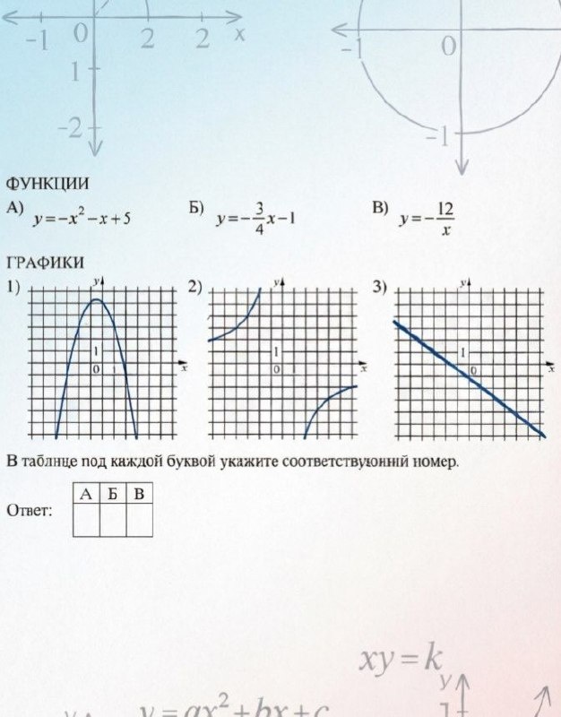 Шаг 1. Определите тип каждого графика (прямая, парабола, гипербола).