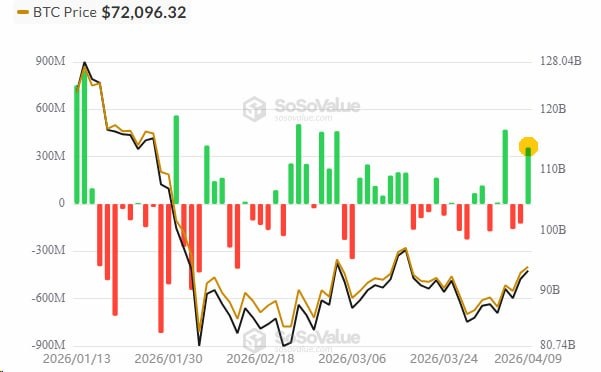 Вчера, 9 апреля 2026, спотовые BTC ETF зафиксировали максимальный за месяц приток около $50 млн. Это отражает растущий интерес институциональных инвесторов, которые выбирают ETF для вложений в биткоин как менее рискованный инструмент. Такой тренд стабилизирует цену BTC, снижая волатильность (резкие колебания цены) и создаёт условия для продолжения ралли (роста). Для инвесторов это сигнал рассмотреть лонг-позиции на биткоин с учетом растущей ликвидности. Проверка по российским реестрам не выявила рисков, связанных с упомянутыми фондами или управляющими компаниями. #новости #БезПафосаФинансы #BTC #крипто #БПФ_Day