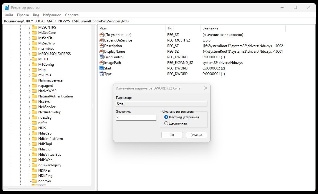 ! Процесс NDU (Network Diagnostic Usage) только ТОРМОЗИТ комп, зато позволяет Microsoft отслеживать ваше подключение Как отключить: 1️⃣ Нажимаете Win+R → вводите regedit; 2️⃣ Там заходите в: Компьютер → HKEY_LOCAL_MACHINE → SYSTEM → CurrentControlSet → Services → Ndu; 3️⃣ Справа кликаете на Start; 4️⃣ Меняете значение c 2 на 4; 5️⃣ Перезапускаете ПК = готово. Сохраните, чтобы забрать ВАШУ память у Билла Гейтса 😡 ©️ Читай Рифмы и Панчи в MAX