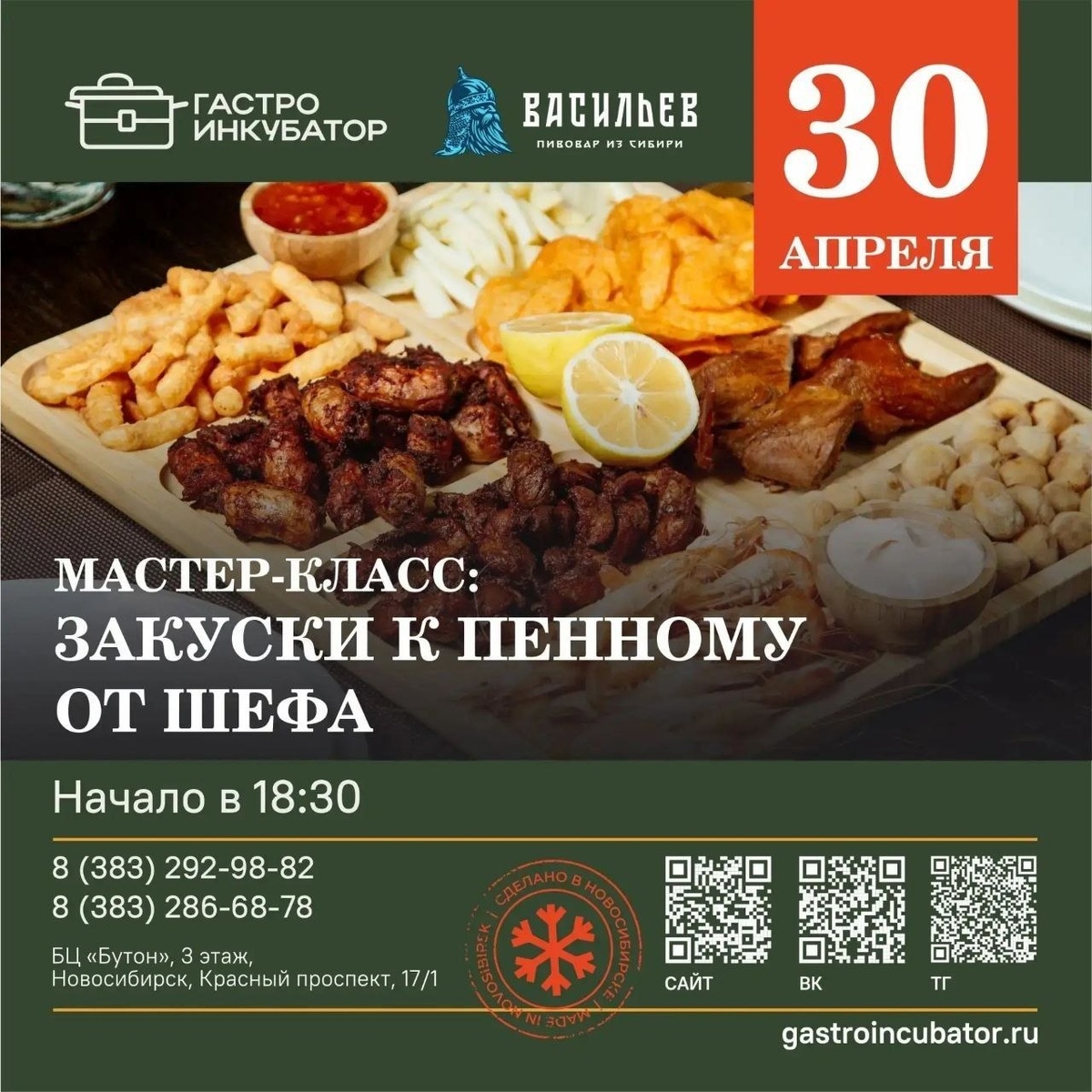30 апреля вы станете участником съёмок нового шоу и одновременно научитесь готовить 5+ блюд к пиву. 18:30 — МАСТЕР-КЛАСС «ПОЛЕЗНАЯ ПИВНАЯ КУХНЯ» Шеф Николай Ильин + пивоварня «Васильев» учат делать закуски, которые превратят любое пиво в шедевр. 🥔 Картофельные чипсы по-гречески 🧅 Луковые кольца в пивном кляре 🍗 Крылья баффало + наггетсы + секретные гренки 🍺 Пенный безлимит в подарок каждому участнику 20:00 — ШОУ «КУЛИНАРНЫЙ ЗАШКВАР» (пилот!) Шефы рассказывают самые стыдные истории из карьеры. Зал голосует (1–10 баллов). От оценки зависит, с чем повар будет готовить: без ножа, с «зашкварным» ингредиентом или как по нотам. Эксперт пробует и выносит вердикт: позор или гениальность. 💥 Это честнее, чем «МастерШеф». И веселее 📍 Красный проспект, 17/1, БЦ «Бутон», 3 этаж ⏰ 30 апреля, 18:30 💰 3 000 ₽ — за билет, который работает на оба события 📞 Мест - 30. Записывайтесь прямо сейчас: +7 (913) 916-98-82 | +7 (913) 007-68-78