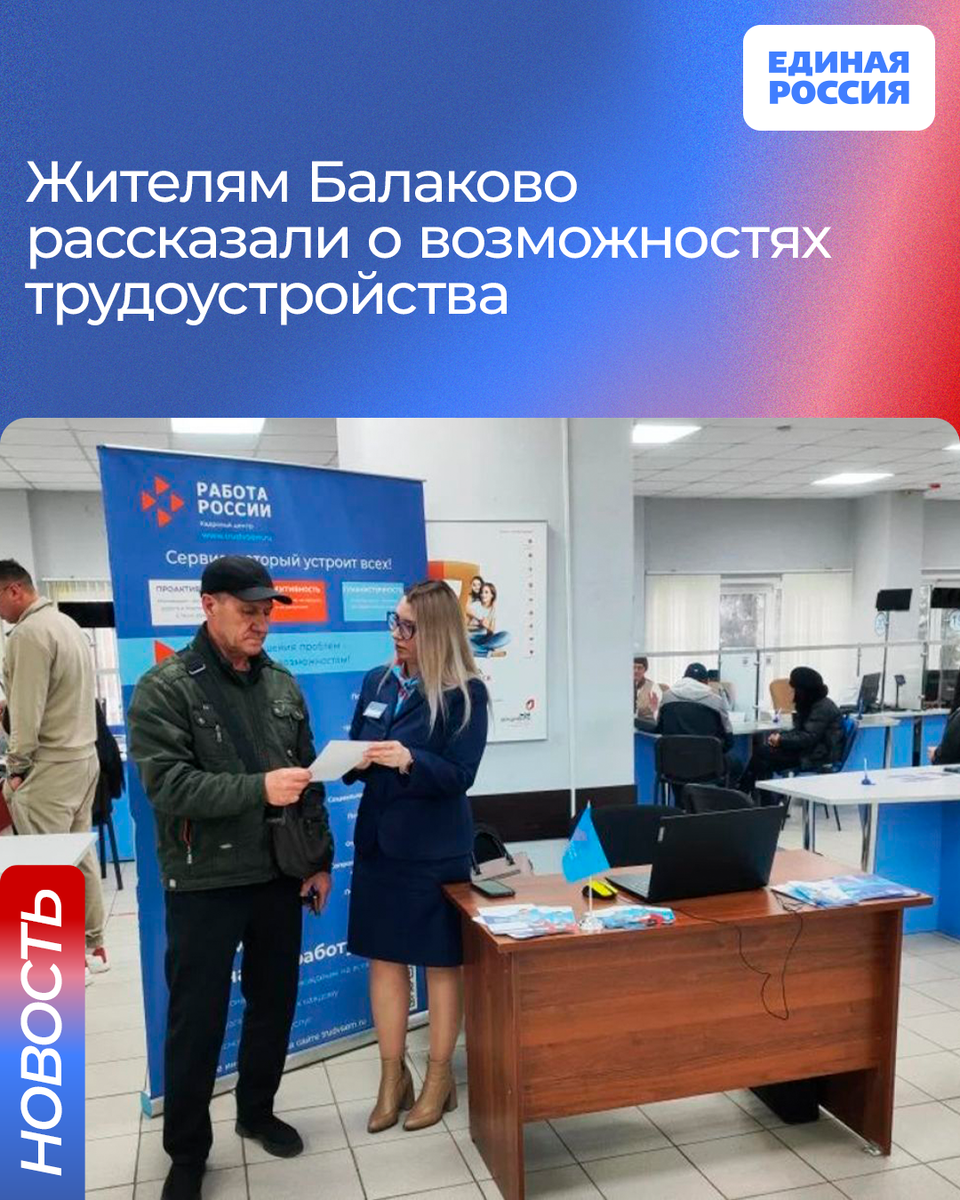 В рамках акции «Единого дня Кадрового центра» сотрудники службы занятости провели информационное мероприятие на площадке многофункционального центра г. Балаково. Мероприятие состоялось при поддержке федерального партийного проекта «Моя карьера с Единой Россией», реализуемого в Саратовской области.