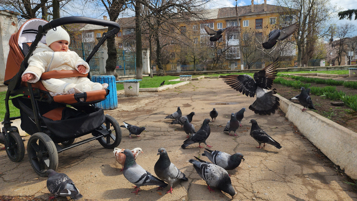 В пятницу снова кормили голубей. Вот бы Мирослава их за хвосты потягала, если бы могла :)