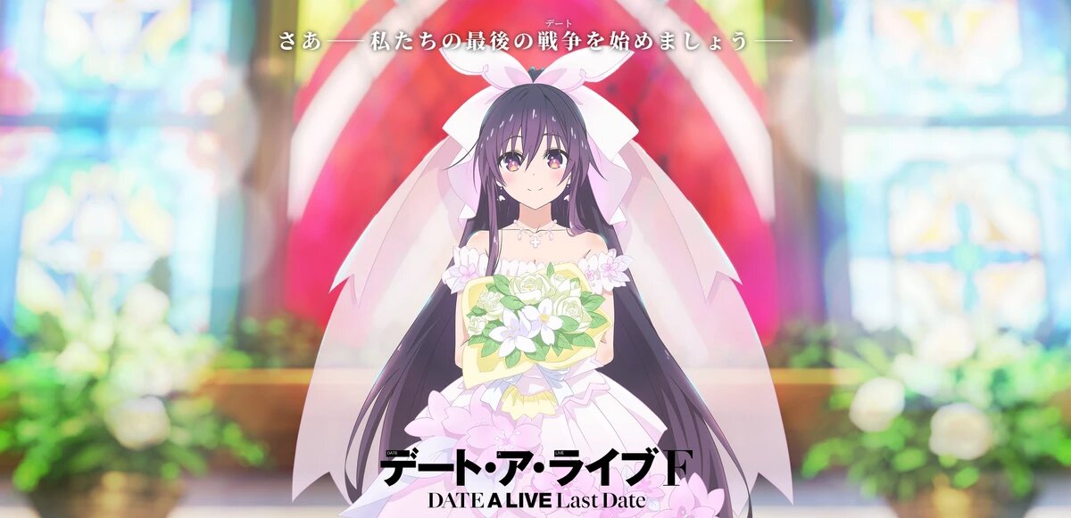 Компания Kadokawa официально подтвердила разработку нового аниме-проекта в серии Date A Live под названием Date A Live F: Last Date ("Рандеву с жизнью F: Последнее свидание"). Судя по заголовку и статусу первоисточника (ранобэ Кощи Тачибаны завершилось на 22 томе в 2020 году), проект станет заключительной главой в истории Шидо и его борьбы за спасение Духов через свидания. https://youtu.be/zphlj3rzJoM Сроки и формат премьеры "Последнего свидания" в данный момент остаются неизвестными, а у нас есть только тизер-трейлер выше и единственный постер с Токой в свадебном платье. Текст на постере (Saa, Watashi-tachi no saigo no Deito o Hajimemashyou) гласит "Чтож, начнем наше последнее свидание...".