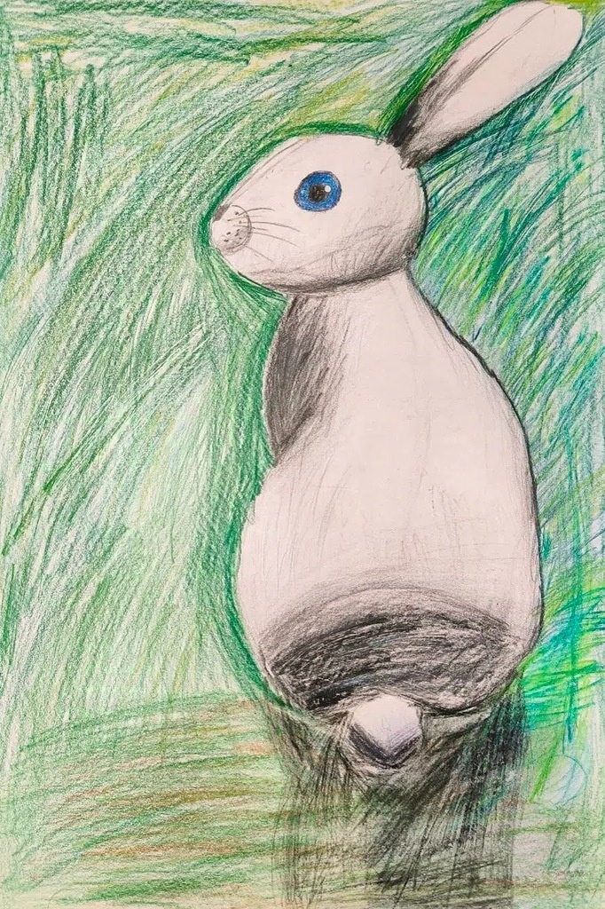 Описание: Рисунок выполнен цветными карандашами и отражает сюжет шуточного стихотворения Н.М. Рубцова «Про зайца». Стихотворение наводит на размышление об одиночестве и