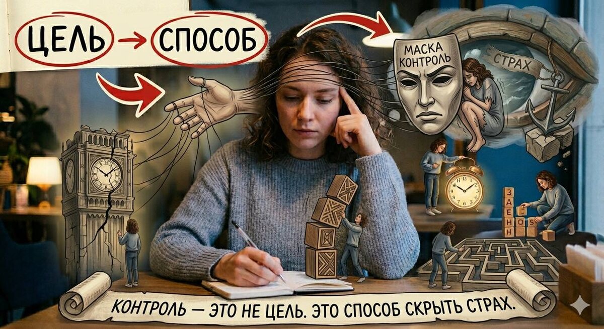 Когда мне говорят «я контролер», я почти никогда не верю, что дело в контроле. Потому что контроль — это не цель. Это способ. Способ не чувствовать что-то, что чувствовать очень страшно. Вот человек проверяет телефон партнёра. Или перечитывает отправленное сообщение пять раз. Или не может лечь спать, пока не составит план на завтра до мелочей. Или злится, когда что-то идёт не по её сценарию. Со стороны — контроль. Внутри — что? Внутри почти всегда страх. Просто он такой старый и такой привычный, что уже не ощущается как страх. Он ощущается как здравый смысл. Как ответственность. Как «я просто хочу, чтобы всё было хорошо». Откуда это берётся — вот что важно понять. Потребность контролировать почти всегда вырастает из опыта, где было небезопасно не контролировать. Где взрослые рядом были непредсказуемы. Или где случилось что-то, что выбило почву из-под ног. И психика сделала вывод: если я буду следить за всем — плохого не случится. Это было умное решение. Оно помогло пережить то время