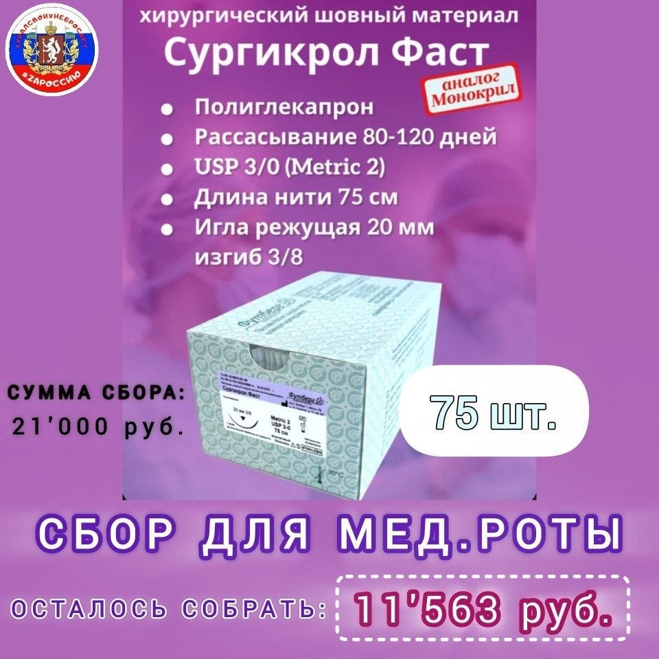 ! В мед.роту, для проведения хирургических манипуляций, необходимы наборы "режущая игла с шовным материалом" в количестве 75 шт. Нужно было 100 шт., но, к счастью, 25 шт. предложила выкупить самостоятельно участница нашей группы - Инесса 🙏❤️ Спасибо ей огромнейшее за это! ♦️Сумма к сбору - 21'000 руб. ♦️Собрано - 9'437 руб. 📌Осталось собрать - 🩵🩵🩵🩵🩵 руб. Давайте поможем нашим военным медикам - "ангелам" на фронте, спасать жизни нашим защитникам 🙏 Любую посильную сумму можно перевести на номер карты: 💳 2202208842197205 или по номеру телефона 📞+79827362150 Получатель - Ирина Владимировна Ш. ("Сбербанк") #уралсвоихнебросает #помощьраненым #медицинскаяпомощь #вместемысправимся