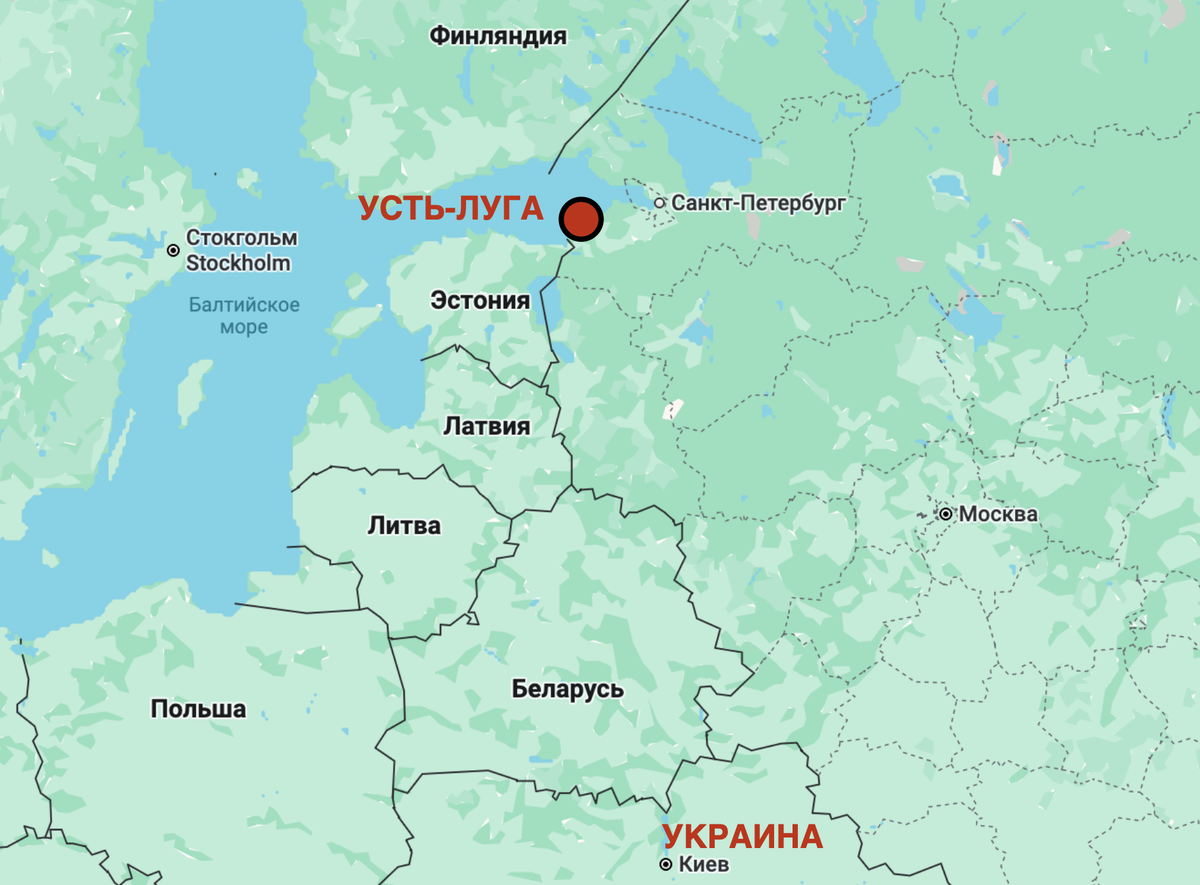 Порт стоит на Балтийском море, примерно в ста с лишним километрах западнее Санкт-Петербурга. Ближайшее расстояние до Украины - девятьсот километров.