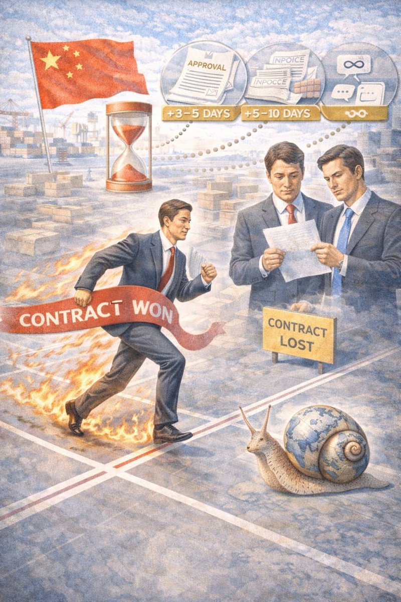 Вы проигрываете по скорости 🐌 Средний цикл сделки в ВЭД сейчас вырос примерно на 20–30%. ⚠️Но есть нюанс. Китай ускорился. А вот клиенты — нет. 📌 Где теряется время: • Согласование — +3–5 дней. • Платежи — +5–10 дней. • Переписка — бесконечно. Именно здесь теряются сделки. Китай работает с теми, кто двигается быстро. 🔔Вывод: Разница в скорости = разница в прибыли. Иногда контракт выигрывает не тот, кто дешевле, а тот, кто быстрее принял решение. 🌍 LT INTERNATIONAL GROUP — ваш надёжный партнёр по бизнесу с Китаем 🇷🇺🤝🇨🇳 #экспорткитай #документация #внешняяторговля #работаскитаем #международныйбизнес #ecommerce #wb #селлер #Wildberries #ozon #wibes 📲 САЙТ / СОЦ СЕТИ 🤌 КОНСУЛЬТАЦИЯ