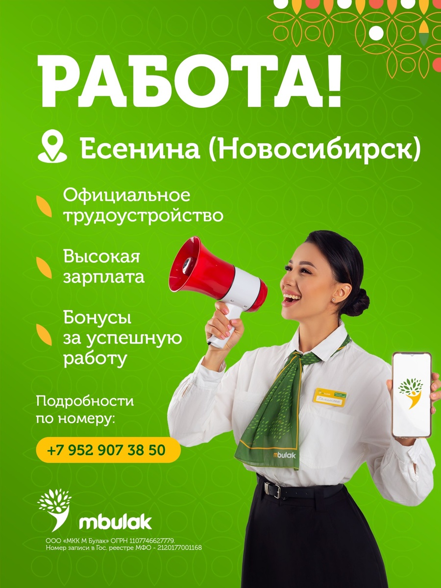 ! Не упустите шанс стать частью Компании М Булак! 📍Прямо сейчас мы ищем специалистов по выдаче займов в городе Новосибирск! ✅ Стабильный доход: фиксированная зарплата + высокие бонусы ✅ Доплаты на проезд и моб. связь ✅ Обучим с нуля, опыт не требуется! ✅ Гибкий график ✅ Официальное трудоустройство ✅ Поощрение лучших: слёты за границей! Все подробности Вы можете узнать по номерам: 📞 +79529073850 🚀 Не забудьте поделиться с друзьями, которые ищут работу в России!