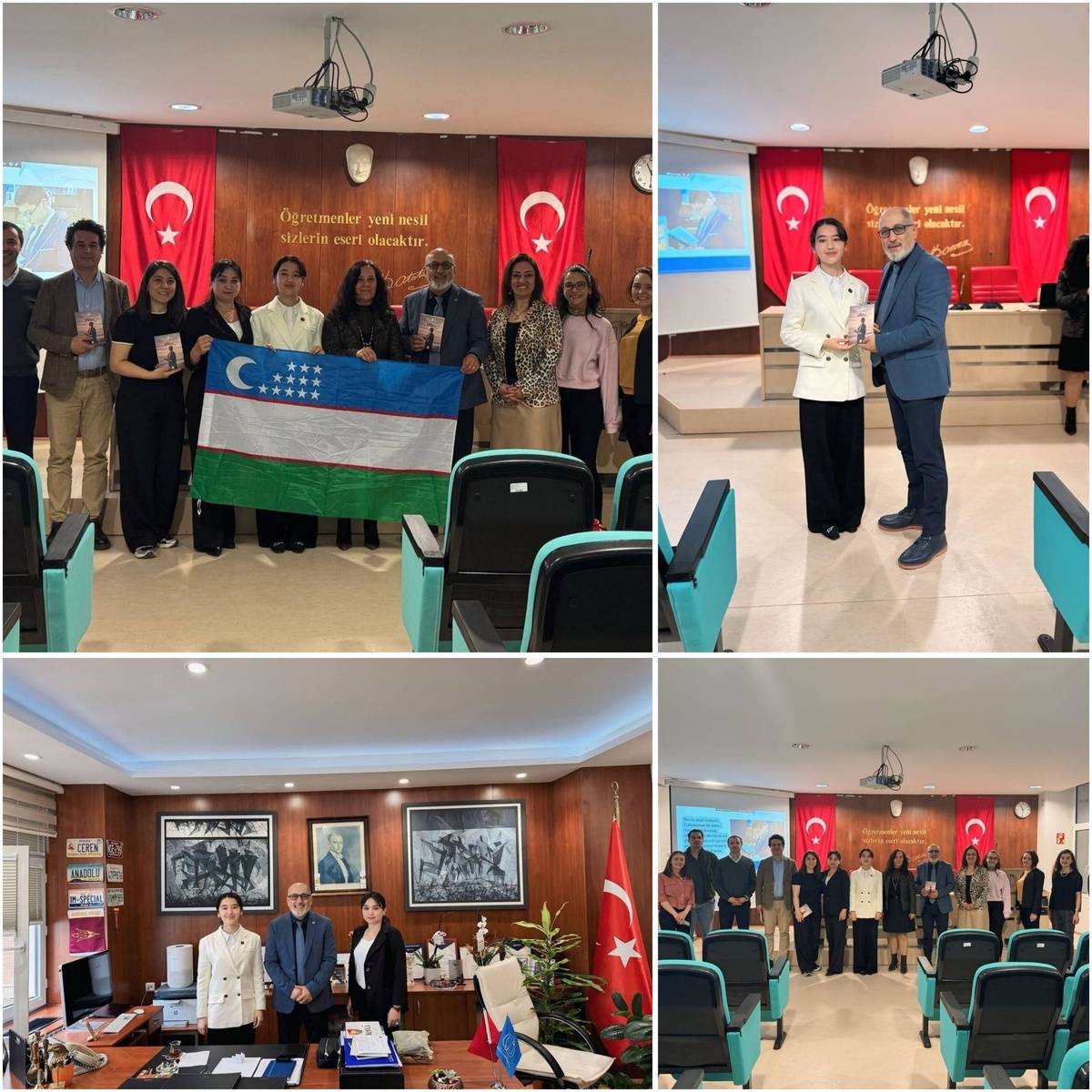 ! Жиззах Давлат Педагогика Университети (ЖДПУ) вакиллари Туркиянинг нуфузли Анадолу университетида халқаро ҳамкорлик доирасида амалиёт ўтамоқда. Филология факультети доценти в.б. Қурбонова Гулбаҳор Сафаровна ҳамда Зулфия номидаги давлат мукофоти совриндори Висола Турсунова мазкур амалиётда фаол иштирок этмоқдалар. Амалиёт давомида университет профессор-ўқитувчилари ва раҳбарияти учун “Ўзбекистон таълим тизимидаги ютуқлар” мавзусида тақдимот ўтказилди. Унда хусусан, Президент, ижод ва ихтисослаштирилган мактаблар ҳақидаги маълумотлар йиғилганларда катта қизиқиш уйғотди. Шунингдек, тадбир доирасида Висола Турсунова турк тилида нашр этилган “Ҳилвис” номли шеърий тўпламини тақдим этишга муваффақ бўлди. Бу каби халқаро ушувлар Ўзбекистон таълим тизимининг нуфузини ошириш ва маданий алмашинувларни мустаҳкамлашга хизмат қилади. Каналимизга обуна бўлинг ва энг сўнгги янгиликларни кузатиб боринг Jizzaxnews |Тelegram | Facebook | Dzen | YouTubе