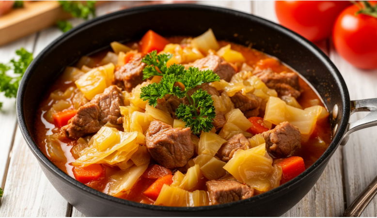 🥬Итог: Тушеная капуста с мясом — это как раз тот случай, когда из обычных продуктов получается плотный и душевный ужин. Не нужно сложных приемов или дорогих ингредиентов. Достаточно соблюсти порядок действий: сначала обжарить мясо, потом овощи, добавить капусту и томить под крышкой. Попробуйте этот базовый рецепт, а потом меняйте его под себя — с грибами, сладким перцем или без томата.