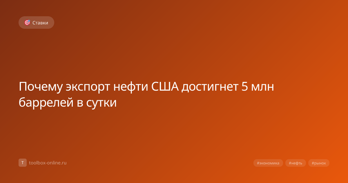Экспорт нефти из США уже в 2026 году достигнет уровня 5 млн баррелей в сутки, поскольку рост добычи сланцевой нефти и открытие новых экспортных маршрутов позволяют компенсировать глобальный энергетический кризис. Рост добычи сланцевой нефти в Техасе и Северной Дакоте уже превысил 12 млн баррелей в сутки, а новые технологии гидроразрыва позволяют увеличить эффективность на 15 % к концу 2026 года. Мировой энергетический кризис создает повышенный спрос на нефть, а американские экспортные терминалы на Гольфе и Восточном побережье способны быстро перенаправлять поставки в Европу и Азию. Инвесторам следует обратить внимание на компании, участвующие в разработке сланцевой нефти и в строительстве экспортных инфраструктур, так как их акции могут вырасти на 12‑18 % в 2026 году. Увеличение американского экспорта создаст дополнительное давление на мировые цены, что может привести к снижению цены на нефть в России до 70 USD за баррель к концу 2026 года. Курсы на спортивные события часто коррелируют