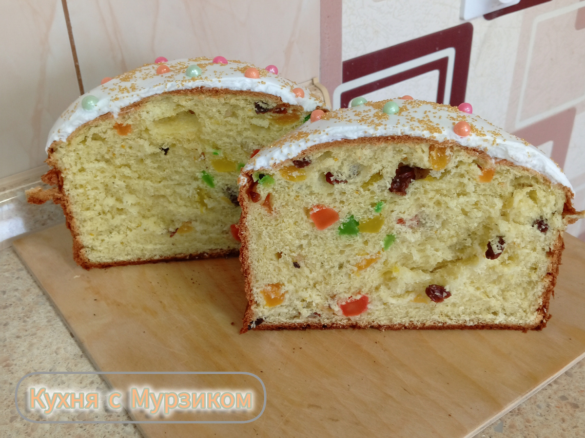 В этом году я перепробовала много куличей: с трёхдневной выдержкой, заварной нежный, бюджетные поминальные. Но для Пасхи захотелось испечь что-то по-настоящему богатое, сытное, с щедрой начинкой и при этом — чтобы не крошилось и было удобно резать. Так родился «Богатырь».