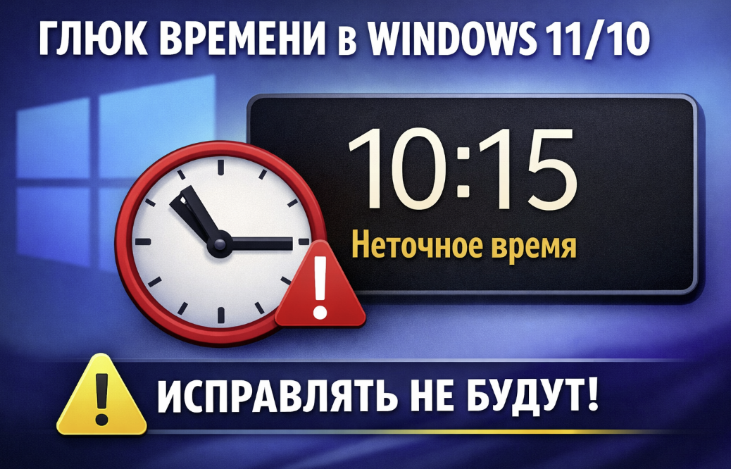 Microsoft официально подтвердила: странное отображение времени на защищённом экране не будет исправлено. Причина простая — это поведение заложено в систему и не считается проблемой. Если открыть защищённый экран через сочетание Ctrl + Alt + Delete, можно заметить, что часы иногда показывают неточное время — отставание примерно до 30 секунд. Речь идёт о так называемом Secure Lock Screen. Здесь доступны действия: Именно на этом экране время обновляется с задержкой. Microsoft объясняет это просто: Из-за этого часы могут визуально «отставать». Несмотря на странное отображение: То есть проблема исключительно визуальная. Есть важный момент: Это два разных режима с разной логикой обновления. Microsoft не считает это багом: Если коротко — часы «врут» только визуально, внутри всё работает как надо.