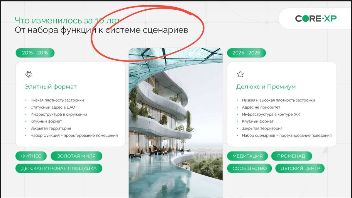 Буквально. А теперь брокеры желающие переметнуться из офисного в жилой сегмент элитки делают из этого презентации. Ну правда же — старье. Вы еще про нанотехнологии вспомните. Какие «сценарии», господи? Просто застройщики, строящие свое жилье фигпойми где (в реконструируемой промке, а не на Золотой миле) тоже хотят называть свои объекты «делюкс-премиальными» и раздувают продукт всякой фигней, типа оправдывающей премиальную претензию. Фигню эту, кстати, сами же на ходу и оптимизируют до ввода. 🔺Треугольный метр: На сайте | в MAX | Telegram | ВКонтакте | Дзен