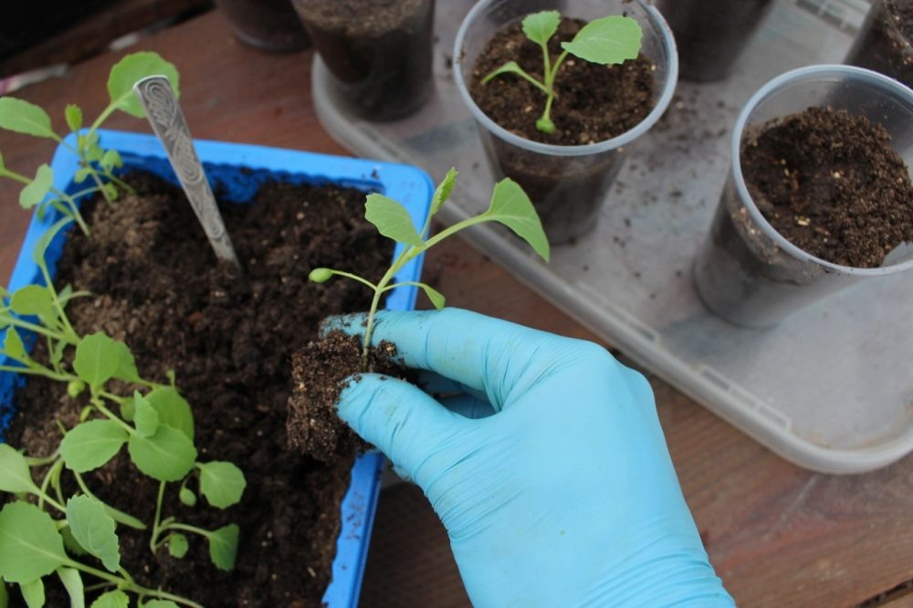 Рассаду капусты можно выращивать без пикировки: высевать семена сразу на большом расстоянии друг от друга в глубокие емкости или в парник, накрытый пленкой. Но если семена были посеяны густо, то без пикировки не обойтись. Пикировку капусты проводят после появления 1-2 настоящих листьев. 1️⃣ Полейте емкость с рассадой отстоянной водой комнатной температуры. 2️⃣ Наполните почвосмесью подготовленные емкости и пролейте грунт раствором биофунгицида на основе сенной палочки или триходермы (Фитоспорин-М, Алирин-Б, Гамаир, Бактофит, Споробактерин, Трихоцин, Триходерма Вериде 471, Трихоплант). 3️⃣ При пересадке следите за тем, чтобы главный корень сеянца не загибался вверх. Высаживайте рассаду, заглубляя растения до семядольных листочков. 4️⃣ Если вы пикируете рассаду в общие ящики или на грядку под пленочное укрытие, старайтесь высаживать сеянцы на расстоянии не менее 8 см. После пикировки в течение нескольких дней защищайте рассаду от попадания прямых солнечных лучей.